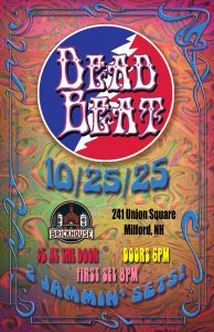 DeadBeat at BrickHouse in Milford, NH on 10/25/25 DeadBeat returns to Brick House for 2 jam’n sets on 12/13/24 for 8-11PM. $5 Cover at the door! We love BrickHouse! Come early for the great food, Stay late for the music! We will see YOU there!