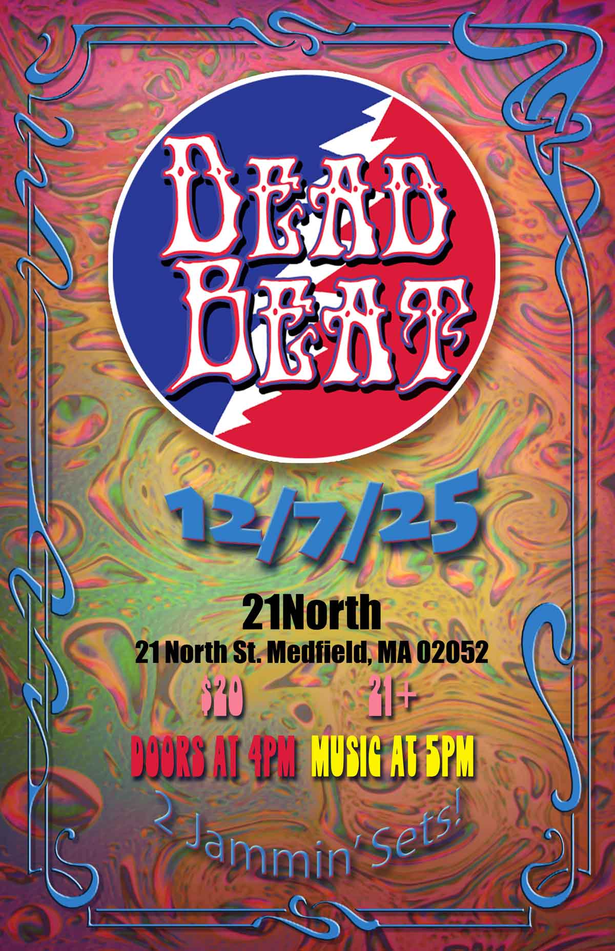 We are psyched to return to 21North in Medfield, MA on Sunday 12/7/25 at 4PM. A comfortable space, awesome food and we had a great time with you all at out last show.