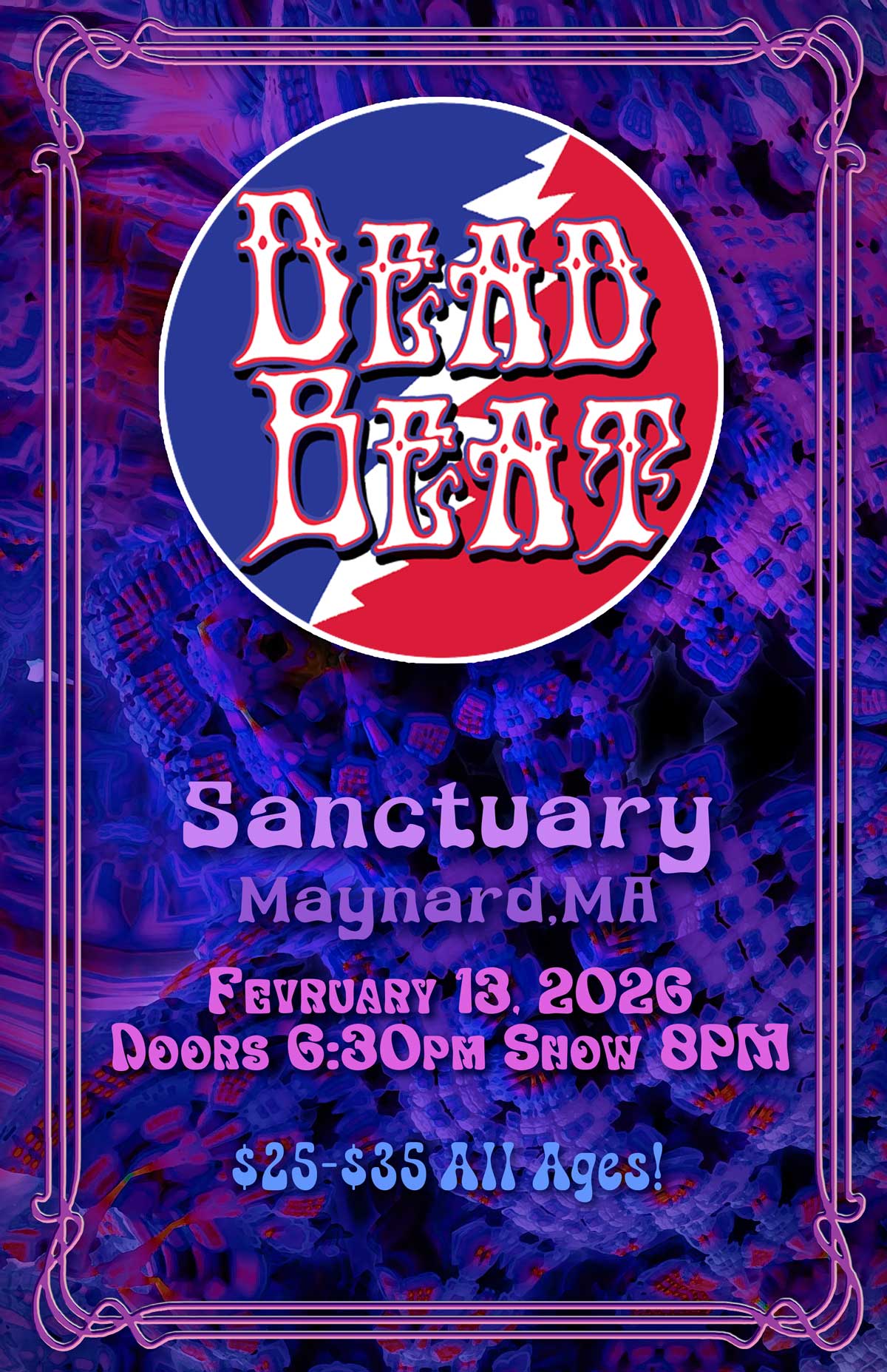 DeadBeat will be bringing the Grateful Dead vibe to Sanctuary in Maynard, MA on February 13, 2026. Join us for 2 rocking sets of Grateful Dead goodness!